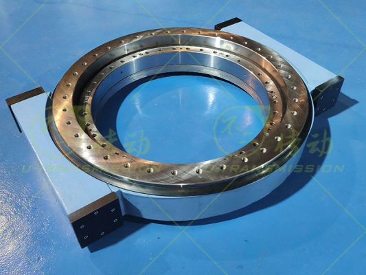 WE-III-O-32精密重載銅渦輪雙蝸桿全防護(hù)蝸輪蝸桿式回轉(zhuǎn)驅(qū)動,客戶使用在精密轉(zhuǎn)臺領(lǐng)域,要求精度高,轉(zhuǎn)速快,穩(wěn)定可靠。根據(jù)客戶要求,不二傳動為客戶設(shè)計(jì)了這一款重載銅渦輪雙蝸桿全防護(hù)蝸輪蝸桿式回轉(zhuǎn)驅(qū)動,回轉(zhuǎn)驅(qū)動采用精密回轉(zhuǎn)支承鑲嵌鋁青銅ZCuAl9Fe4Ni4Mn2的方式,既保證回轉(zhuǎn)驅(qū)動的承載能力,又保證了回轉(zhuǎn)驅(qū)動轉(zhuǎn)速快,穩(wěn)定可靠。