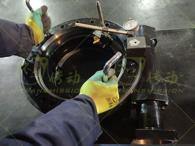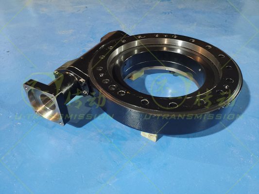 裝配調(diào)試時(shí)對(duì)回轉(zhuǎn)驅(qū)動(dòng)進(jìn)行多點(diǎn)的齒間隙檢測(cè),保證回轉(zhuǎn)驅(qū)動(dòng)的精度在0.05°以內(nèi),調(diào)整完齒間隙,對(duì)回轉(zhuǎn)驅(qū)動(dòng)進(jìn)行靈活性檢測(cè),確保一圈上所有的點(diǎn)都不能有卡阻現(xiàn)象,保證客戶裝機(jī)使用萬無一失。不二傳動(dòng)始終本著為客戶著想,給客戶提供最大的便捷,這款回轉(zhuǎn)驅(qū)動(dòng)專門為客戶設(shè)計(jì)了適配法蘭,客戶收到貨后,可以直接連接減速電機(jī),方便省心。