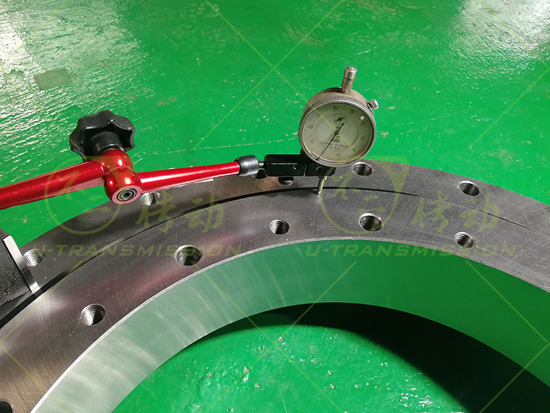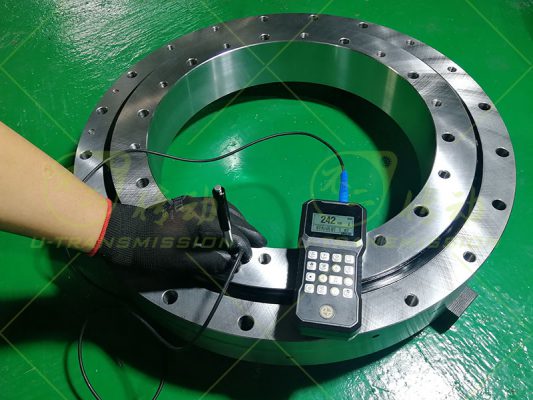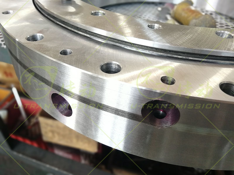 020.25.560 精密雙排球回轉(zhuǎn)支承客戶用在破碎設(shè)備上,轉(zhuǎn)速60轉(zhuǎn)/分鐘,由皮帶輪直接帶動旋轉(zhuǎn),雙排球回轉(zhuǎn)支承具有轉(zhuǎn)速高,載荷大,抗傾覆能力好,運(yùn)轉(zhuǎn)平穩(wěn)等特點(diǎn),加工的難點(diǎn)是保證兩排溝道位置一致還需要保證兩排溝道平行,只有這樣兩排鋼球才能同時(shí)受力,才是真正意義上的雙排球,加工不好的話只有一排鋼球受力,就變成單排球回轉(zhuǎn)支承了,失去了使用雙排球回轉(zhuǎn)支承的意義。