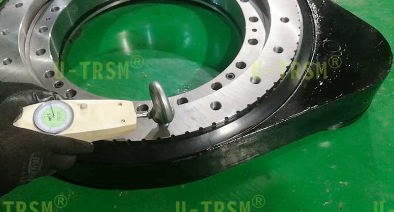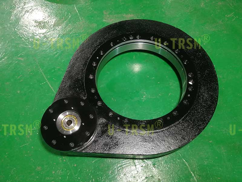 S-III-O-0555 外齒齒輪式回轉(zhuǎn)驅(qū)動應(yīng)用在重型機械設(shè)備上,用來轉(zhuǎn)動工件,回轉(zhuǎn)驅(qū)動載重不大,但是使用中有較大的傾覆力,設(shè)備的安裝空間比較有限,不能使用回轉(zhuǎn)中心直徑大的驅(qū)動,綜合考慮最終選擇了重載系列的0555這個型號。