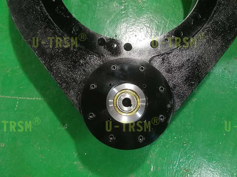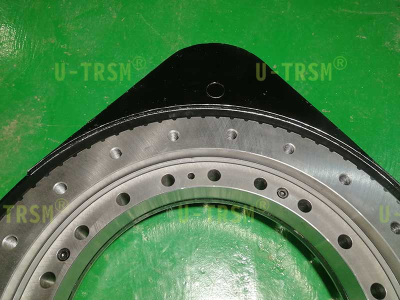 重載系列的回轉(zhuǎn)驅(qū)動回轉(zhuǎn)支承加厚設(shè)計,鋼球選用更大規(guī)格的,殼體加厚設(shè)計,法蘭定位銷加強設(shè)計,這樣的設(shè)計可以顯著提高回轉(zhuǎn)驅(qū)動的傾覆力矩,齒輪和齒圈采用模數(shù)8的齒,進行齒淬火增加齒面的耐磨性和耐沖擊性,適合客戶頻繁啟停的工況,客戶的電機法蘭特殊,如果想要直接連接只能通過給回轉(zhuǎn)驅(qū)動的法蘭預(yù)埋螺栓的方式實現(xiàn),我們采用了非??煽康念A(yù)埋螺栓的方法,既能保證客戶使用的可靠性,又能非常方便的拆卸更換。