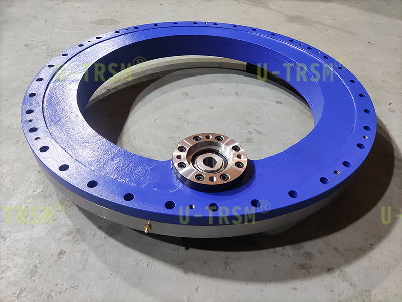 內(nèi)齒的回轉(zhuǎn)驅(qū)動(dòng)主動(dòng)齒輪分布在回轉(zhuǎn)驅(qū)動(dòng)的內(nèi)部,擠壓內(nèi)部空間,回轉(zhuǎn)驅(qū)動(dòng)的外徑是個(gè)整圓,完全滿足客戶的使用要求?;剞D(zhuǎn)驅(qū)動(dòng)的內(nèi)圈被主動(dòng)齒輪帶動(dòng)旋轉(zhuǎn),外圈和殼體靜止不旋轉(zhuǎn)。