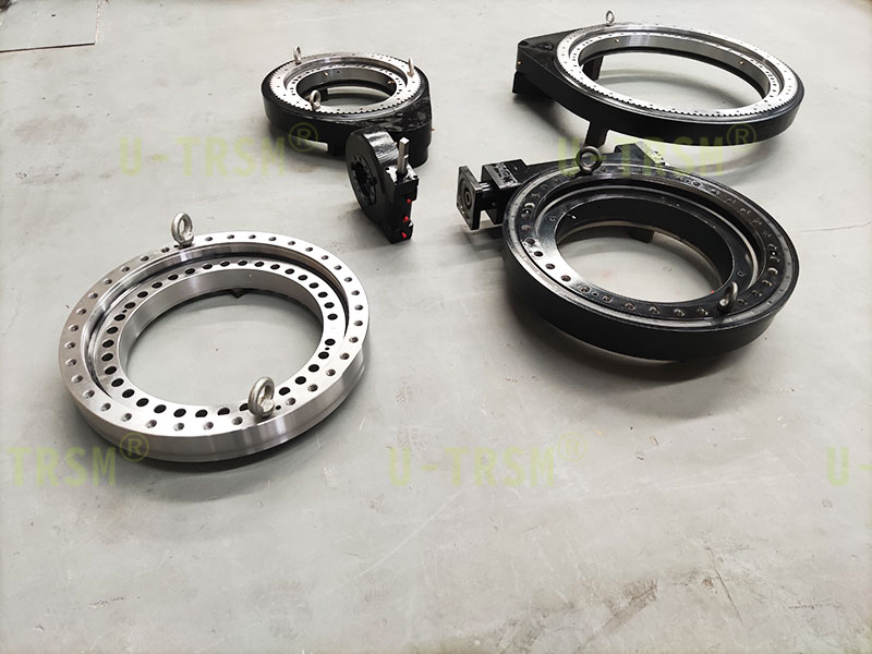 齒輪式回轉(zhuǎn)驅(qū)動、蝸輪蝸桿回轉(zhuǎn)驅(qū)動、回轉(zhuǎn)支承各有各的優(yōu)點(diǎn)和適用工況。齒輪式回轉(zhuǎn)驅(qū)動具有精度高,轉(zhuǎn)速快,防塵防水等優(yōu)點(diǎn),廣泛應(yīng)用在要求高精度和高轉(zhuǎn)速的場合。蝸輪蝸桿回轉(zhuǎn)驅(qū)動具有減速比大,可以自鎖等特點(diǎn),廣泛應(yīng)用在要求轉(zhuǎn)速低,要求安全系數(shù)高的場合?;剞D(zhuǎn)支承結(jié)構(gòu)簡單,生產(chǎn)成本低廣泛應(yīng)用在各種設(shè)備上,追求結(jié)構(gòu)緊湊,設(shè)備整潔,維護(hù)頻率低的客戶可以選擇使用回轉(zhuǎn)驅(qū)動來替代帶齒的回轉(zhuǎn)支承。
