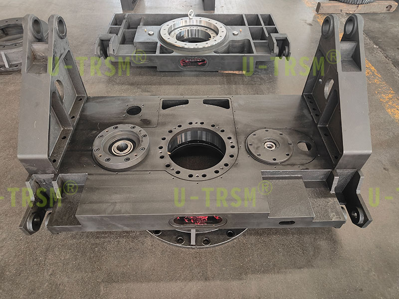 此款回轉(zhuǎn)驅(qū)動應用在自動化旋轉(zhuǎn)平臺設備中,兩側(cè)支臂孔與平臺孔成角度,用于連接舉升設備使用,此驅(qū)動與平臺集成一體化設計,節(jié)省設備安裝空間,避免過多的安裝配合造成的誤差累計增加。
