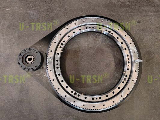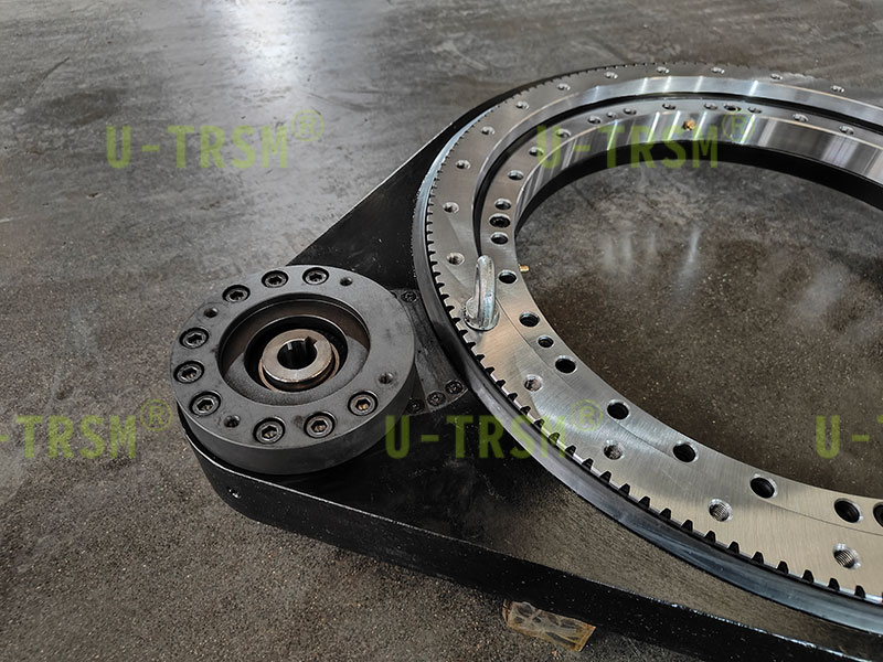 此款回轉(zhuǎn)驅(qū)動(dòng)應(yīng)用于自動(dòng)化機(jī)械設(shè)備上,在標(biāo)準(zhǔn)型號(hào)的基礎(chǔ)上增加中間齒輪設(shè)計(jì),由原來的單齒輪傳動(dòng)更改為多級(jí)傳動(dòng),輸入與輸出端在同一側(cè)的設(shè)計(jì),此款回轉(zhuǎn)驅(qū)動(dòng)的設(shè)計(jì)優(yōu)點(diǎn)在于,多級(jí)的傳動(dòng)下增加了中心距,使得客戶的輸入端減速機(jī)與電機(jī)遠(yuǎn)離被旋轉(zhuǎn)工件。輸入輸出同側(cè)的設(shè)計(jì)節(jié)省了客戶安裝空間,提高了客戶在設(shè)計(jì)及安裝過程中的便利性,扭矩較小的輕型的設(shè)計(jì),齒輪沒有進(jìn)行淬火,抵消了因淬火造成的齒輪輕微變形,提高傳動(dòng)的精度。
